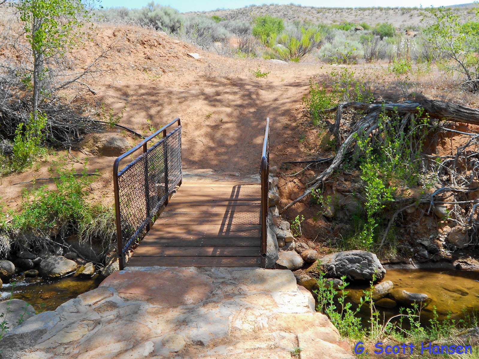 - A footbridge assists hikers and bikers in crossing the Quail Creek drainage.