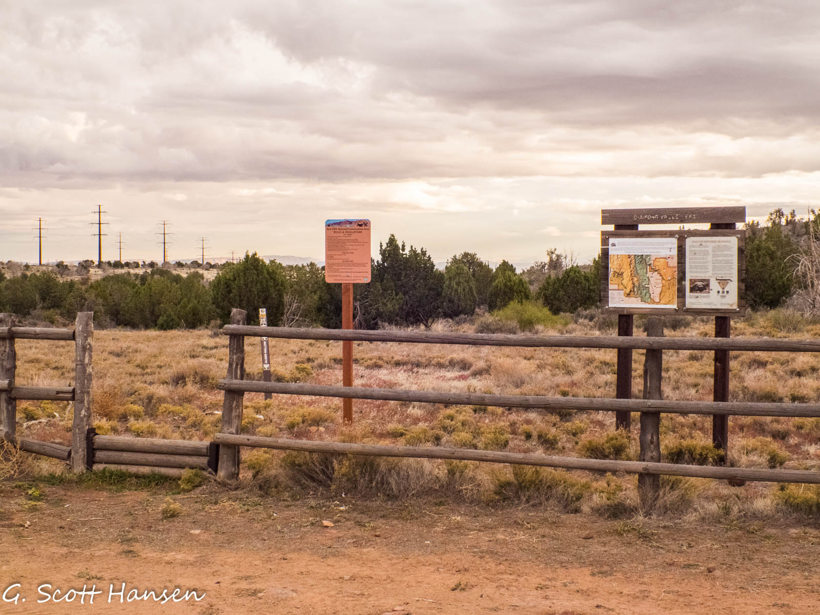 - The trail ends on the south at this junction with the Lange’s Dugway trail. Visitors may also begin their hike or ride at this point and proceed to the north.