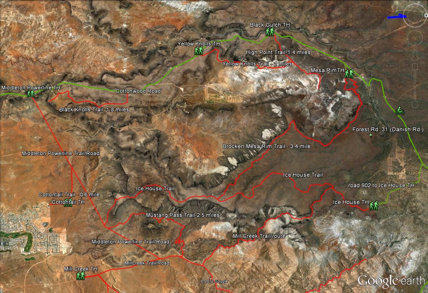 - The trail ends at the top of the lava bluff and does not continue south to reach the Middleton Powerline trail as of this time.
