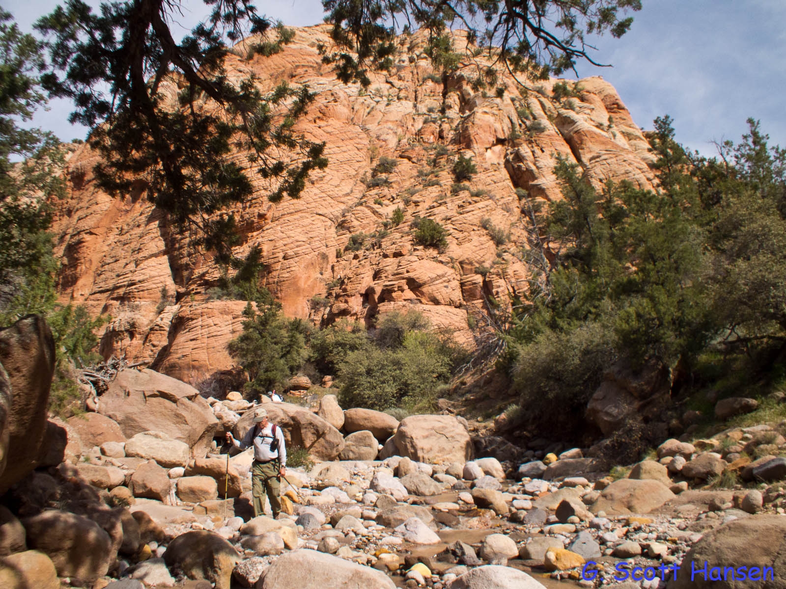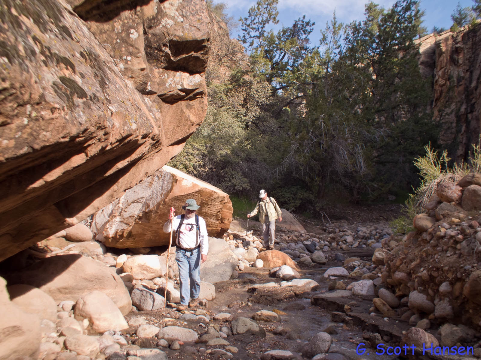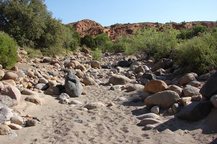 - The wash bottom is heavily bouldered along portions throughout the canyon. User trails are often found to help hikers and equestrians get around such sections.