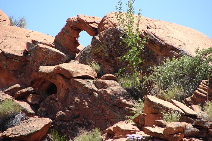 - Observant visitors may see features such as this nice unnamed arch above the canyon bottom.