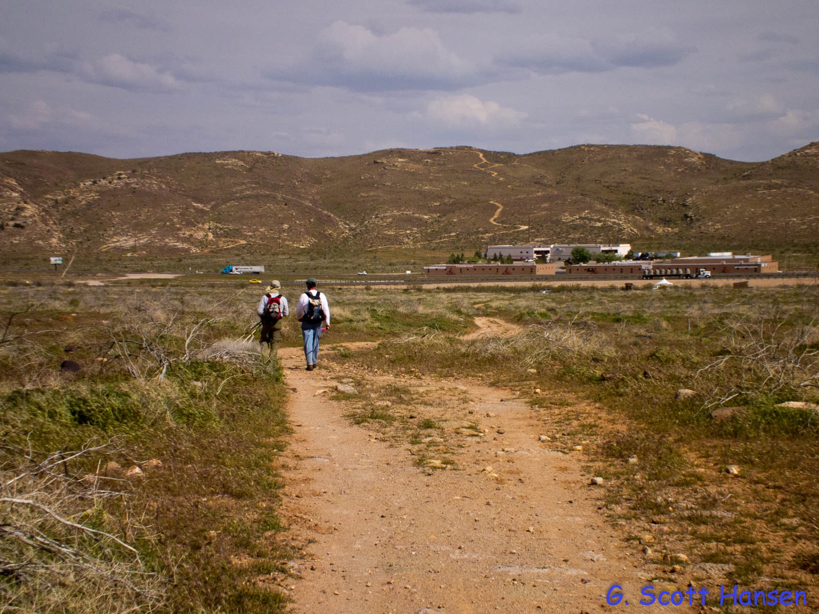 - Trail from Cottonwood trailhead looking back to the east. Begins as a two-track suitable for hikers, bikers, and equestrians.