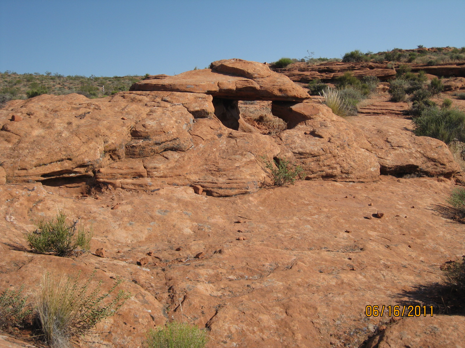 - Numerous mini arches and rock cavities are found in the red rock formations along the trail