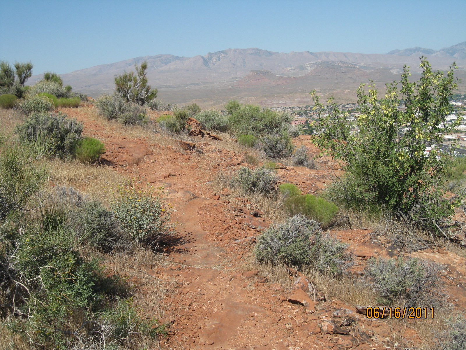 This easy to moderately difficult trail provides nice views of St. George, the Red Hills golf course, and surrounding areas. It is a very popular trail and ideal for families, bikers, and individual hikers. It can be accessed from three trailheads: the Brooks Nature Park trailhead via the Brooks Nature Trail, the Pioneer Hills trailhead, and the Owen’s Loop Trail step-over off the Red Hills Parkway.