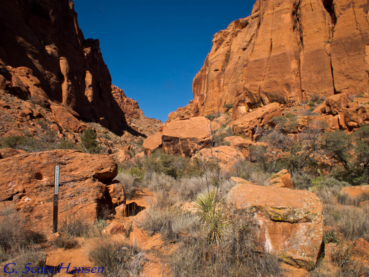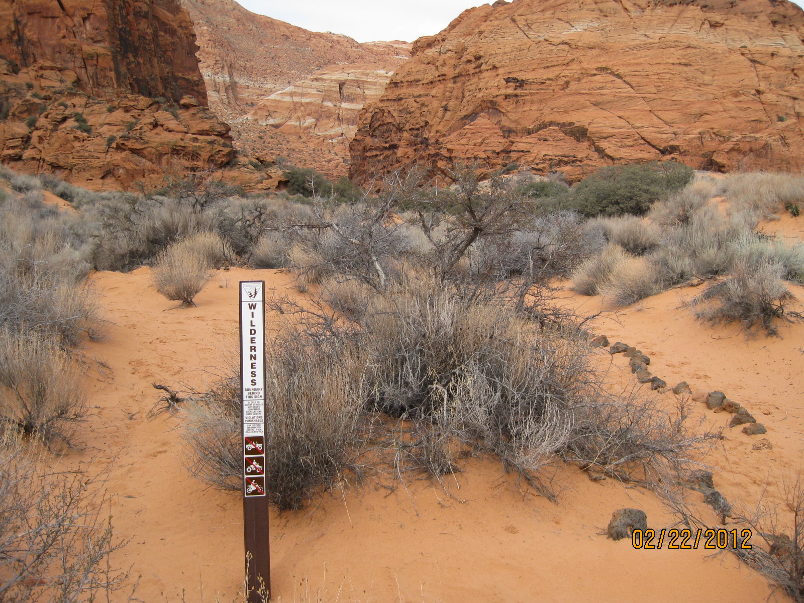 - Further up the canyon, visitors will follow established user trails but no signs exist because of the wilderness designation.