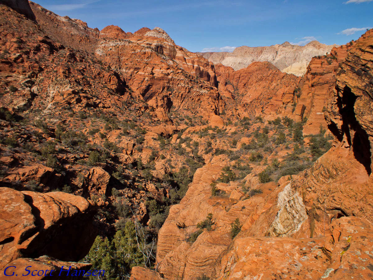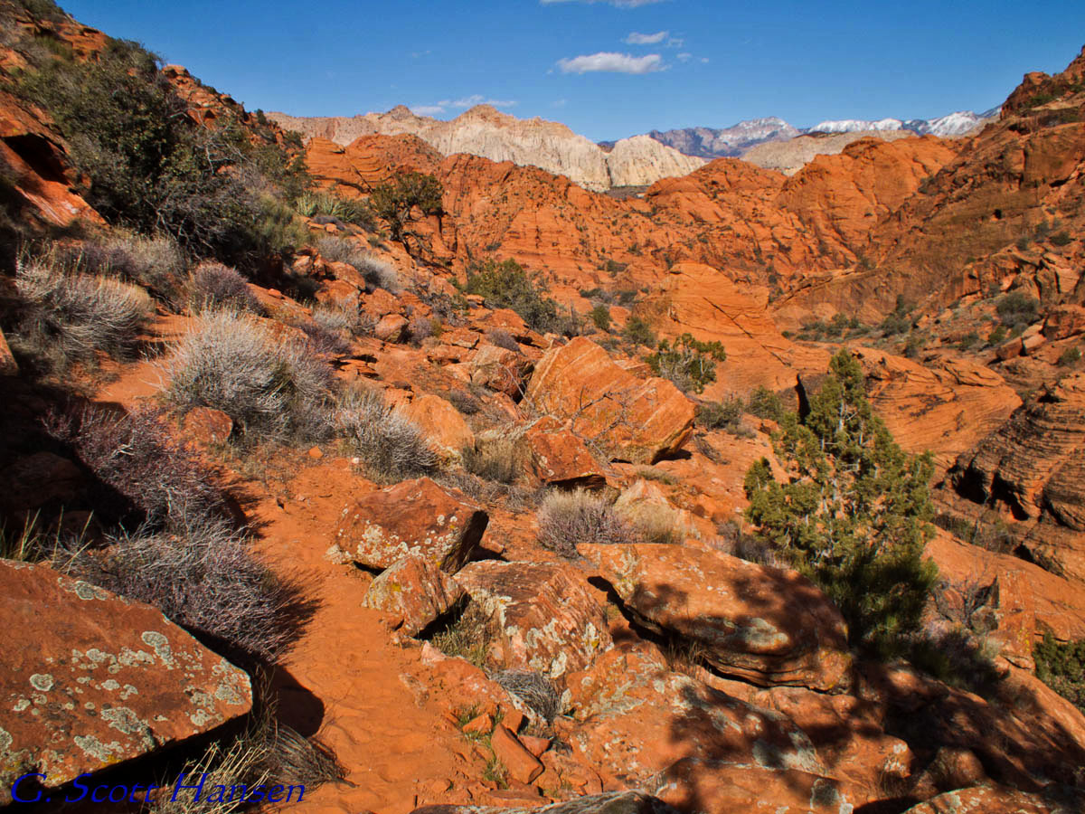 - From the saddle, visitors can look north to enjoy the spectacular sandstone complex in the Red Mountain Wilderness Area and the adjacent portion of Snow Canyon State Park.
