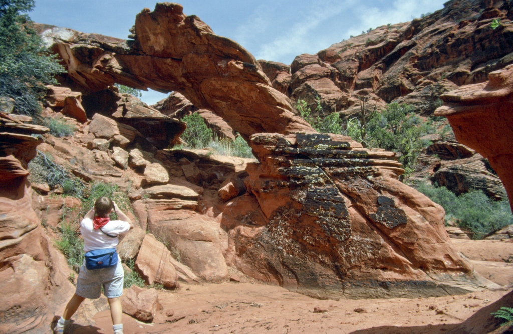 - Observant visitors may find numerous arches and other geologic features on or adjacent to the trail. Visitors will need to do some exploration in order to find spectacular features such as this beautiful arch.