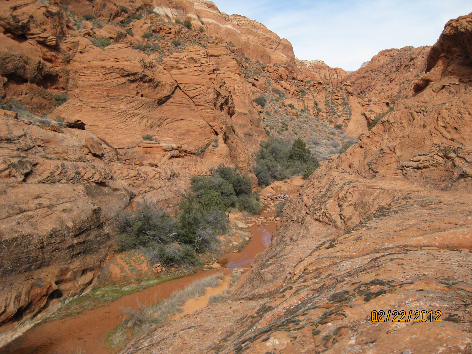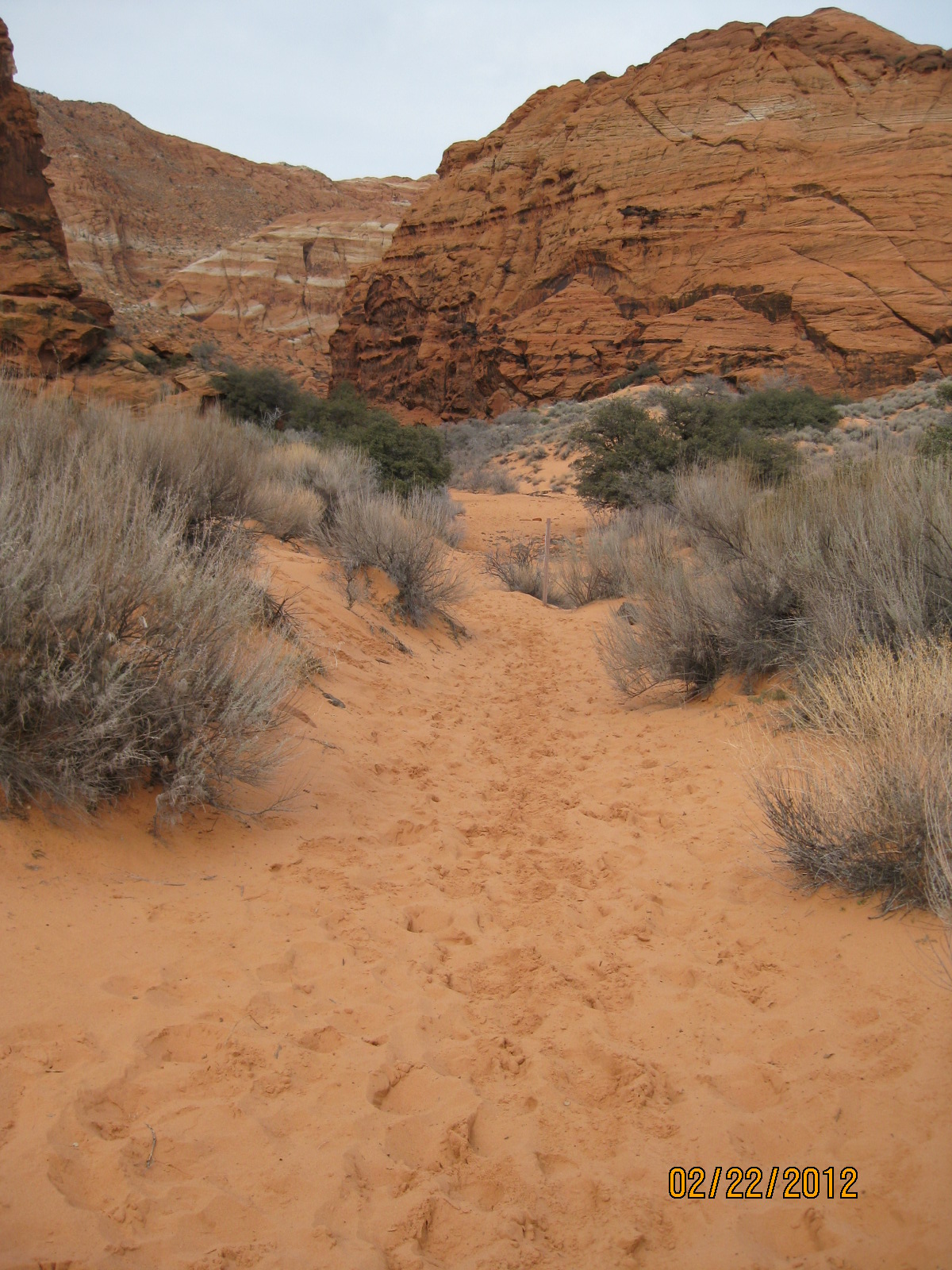 - At the north end of the trail, visitors come out on a sandy wash to intersect with the Three Ponds trail coming out of Snow Canyon State Park.