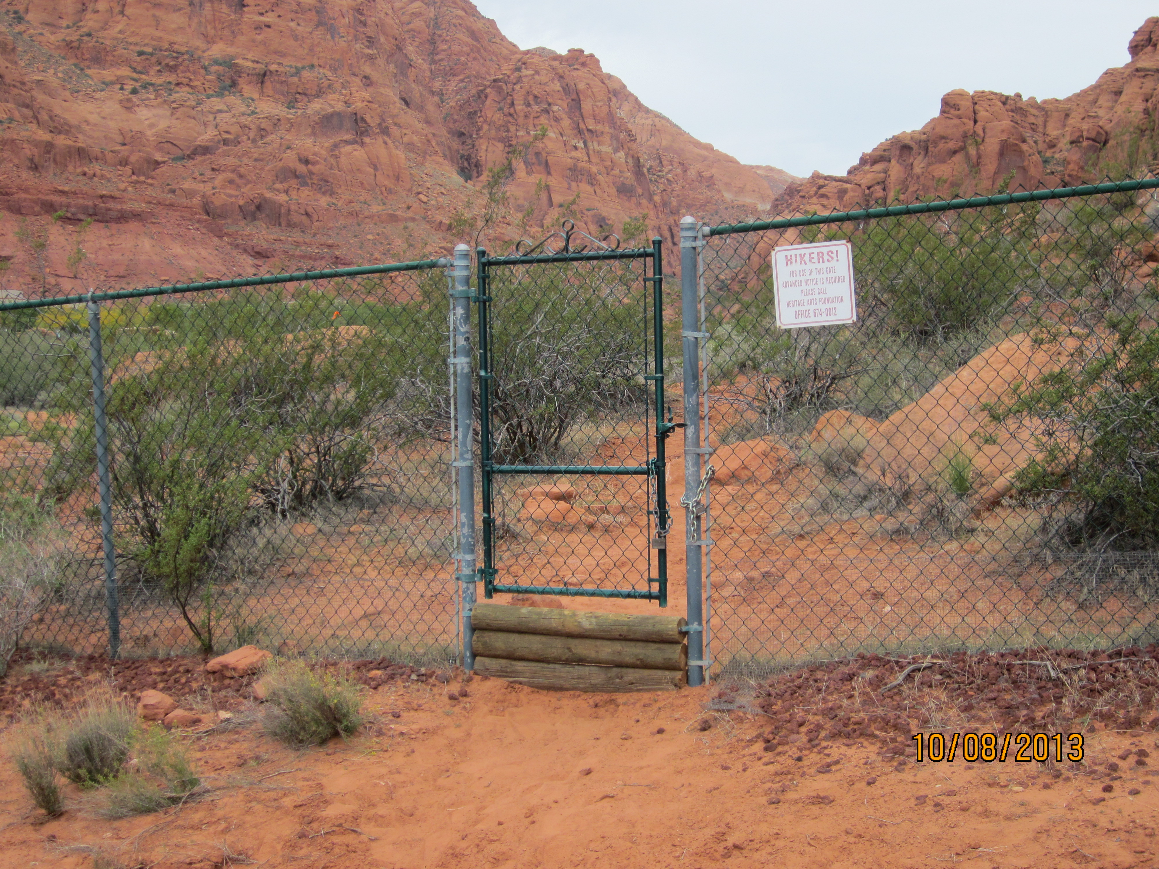 - Hikers may enter the Tuacahn property through this gate either from the southern extension trail or from the Tuacahn entrance gate.