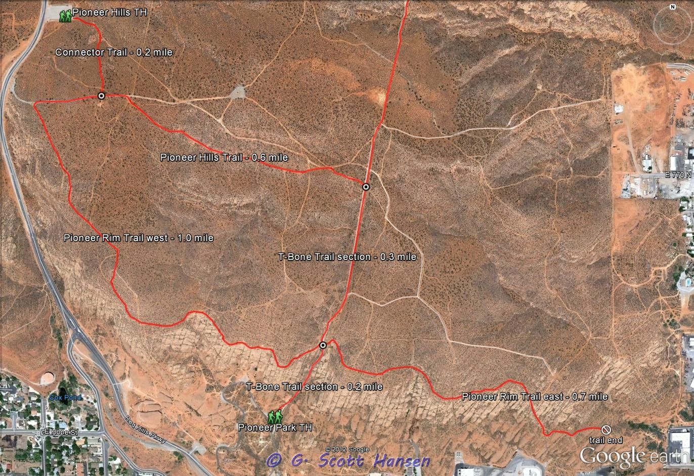 - Most people access the trail from the Pioneer Hills trailhead located on the Red Hills Parkway north of St. George City’s Pioneer Park.