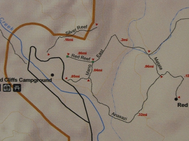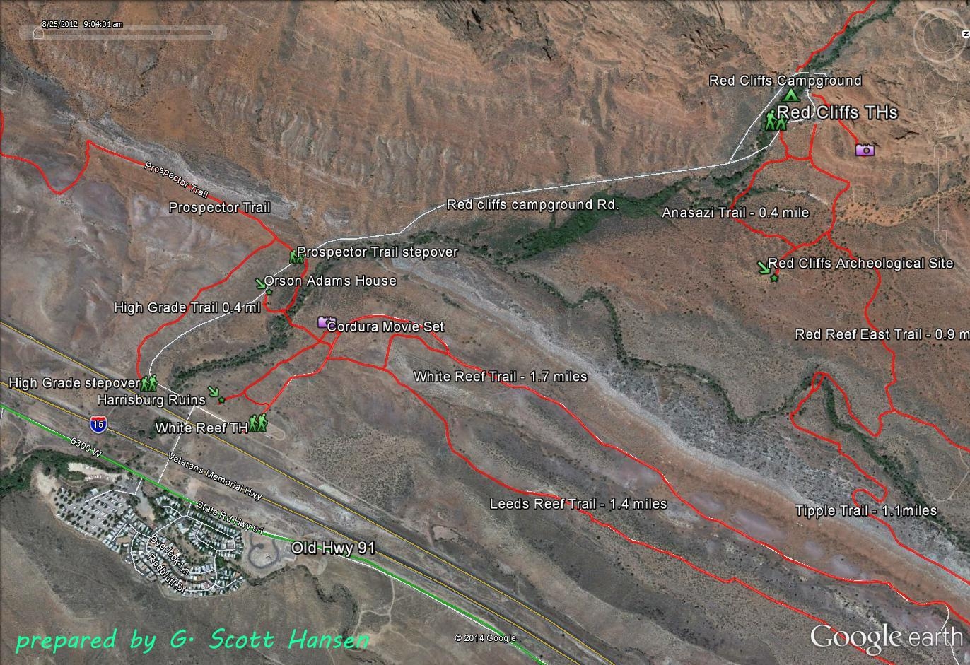 - This map shows how access is gained to trailheads in the Red Cliffs Recreation site and the numerous trails that are found within this area.