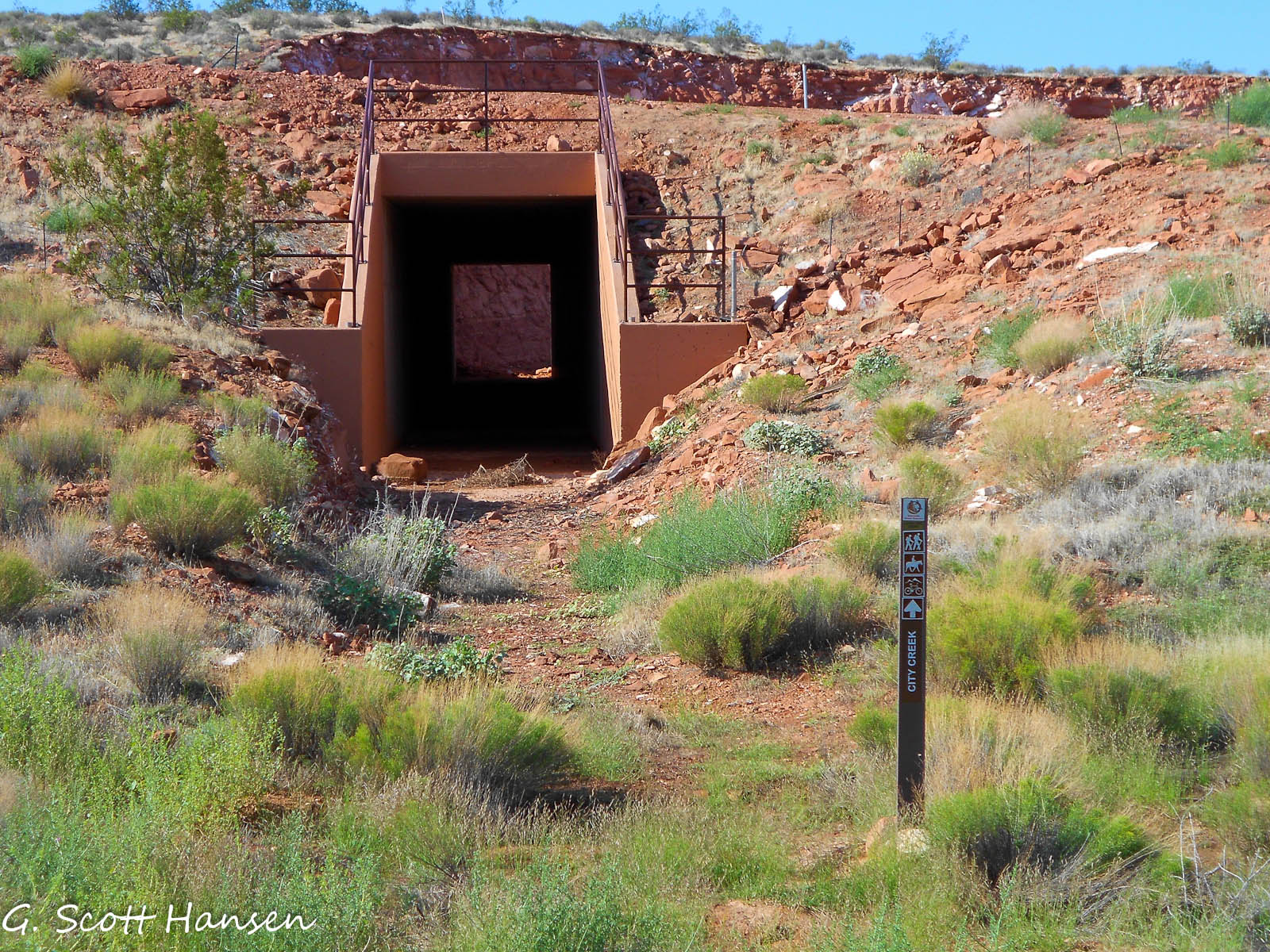 - On the south end the trail passes through an underpass below the Red Hills Parkway which carries them up to a connection with the City Creek trail.