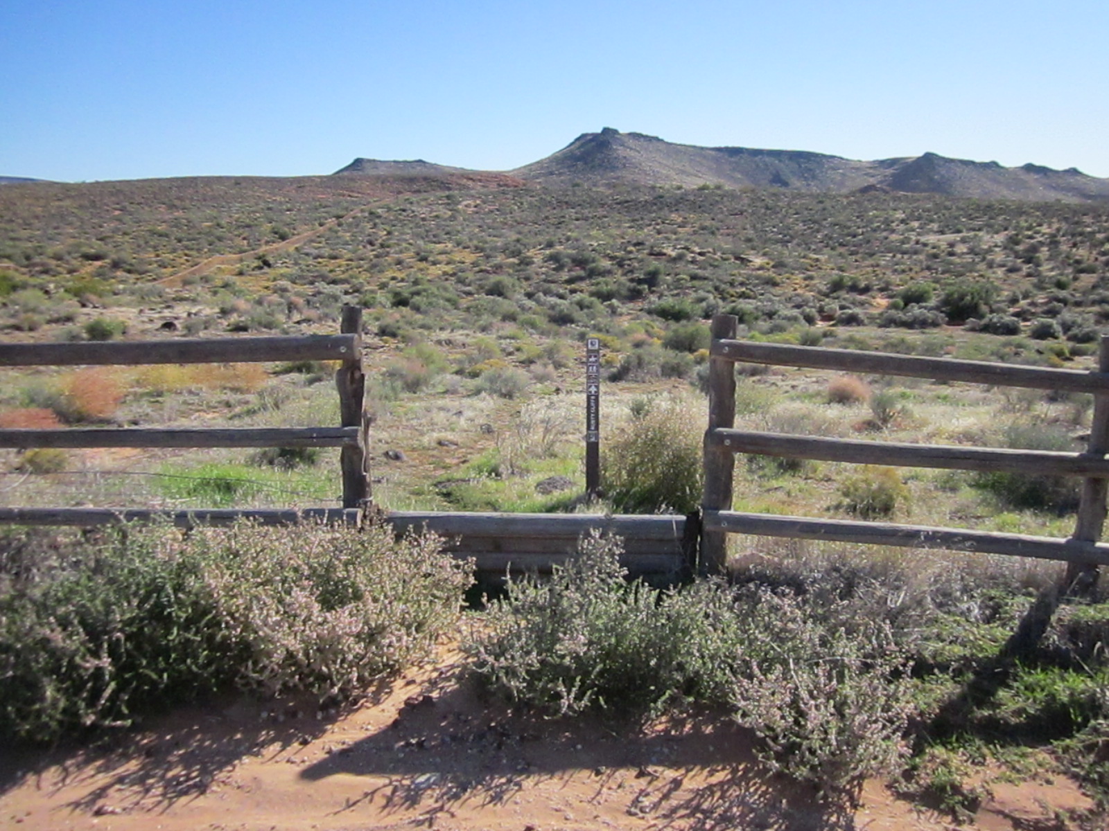 - From the north, visitors will enter the trail through this stepover at the south end of the parking area.