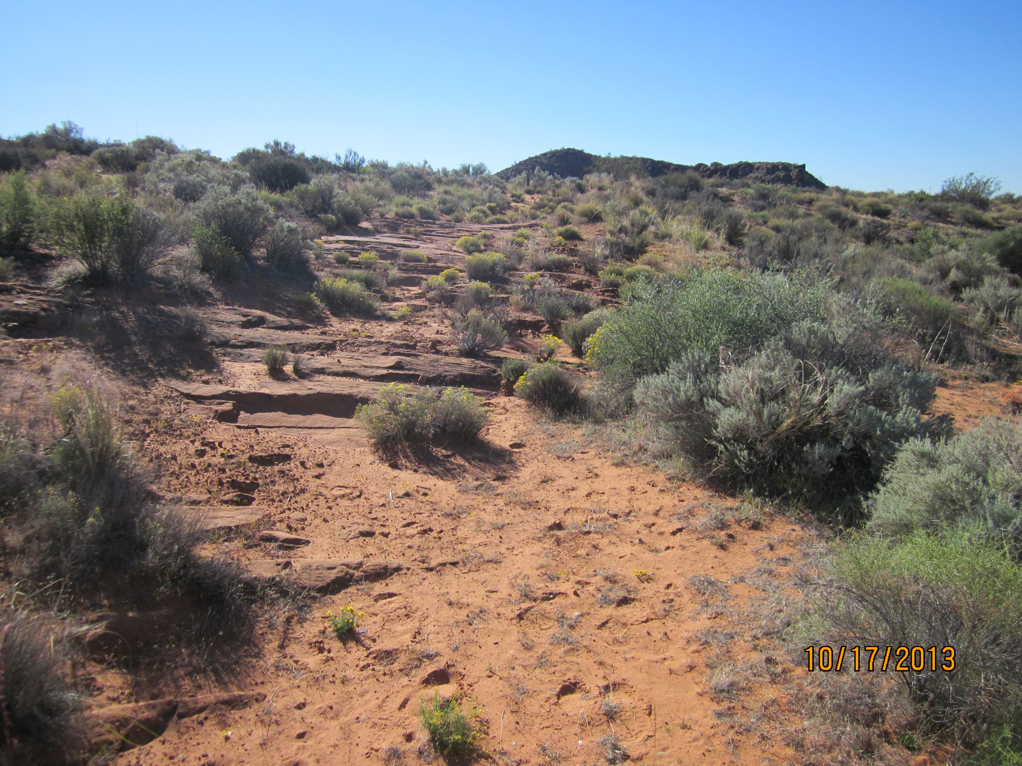 - The trail crosses multiple dry sandy washes.