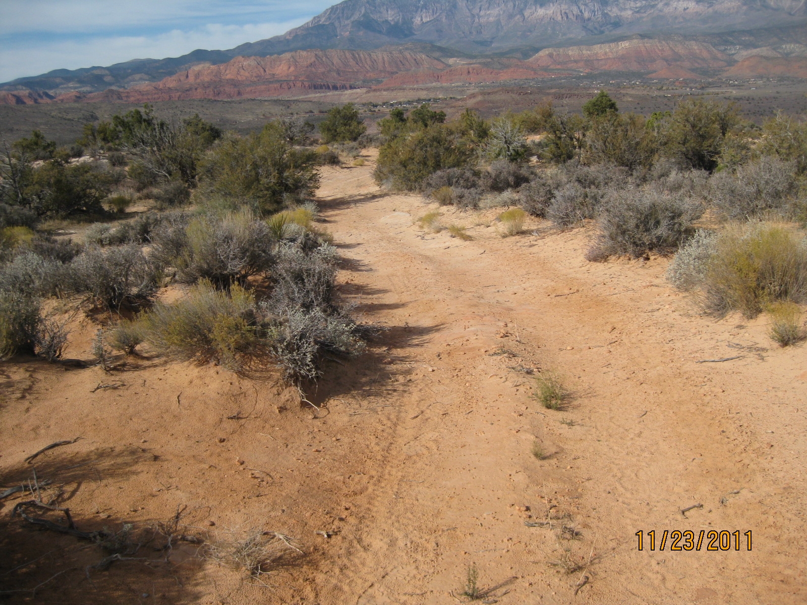 Sand Cove Access is a rough jeep trail that connects the main Babylon road from the Sand Cove trailhead to the popular Sand Cove Primitive recreation site. It is open to travel by motorized vehicles including ATVs. The route is unmaintained except by vehicle travel. It is both sandy and rocky and requires a high clearance vehicle. A 4WD vehicle is strongly recommended. Only about ½ mile long, the route drops down into a deep wash and climbs out again over rocky outcrops with a total up and down elevation change of about 160 feet. Suitable for hikers, bikers, and equestrians, the route connects directly with the Flicker, Sandstone Mountain, and popular Arch trails. The route lies entirely on lands administered by the BLM in the Red Cliffs NCA.
