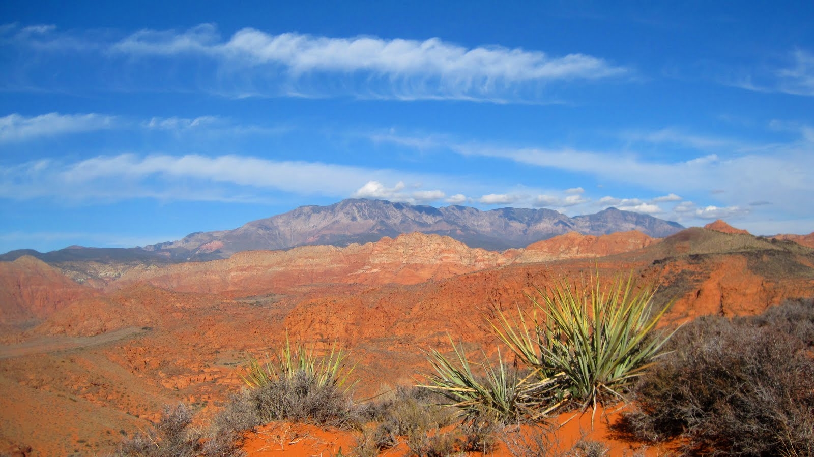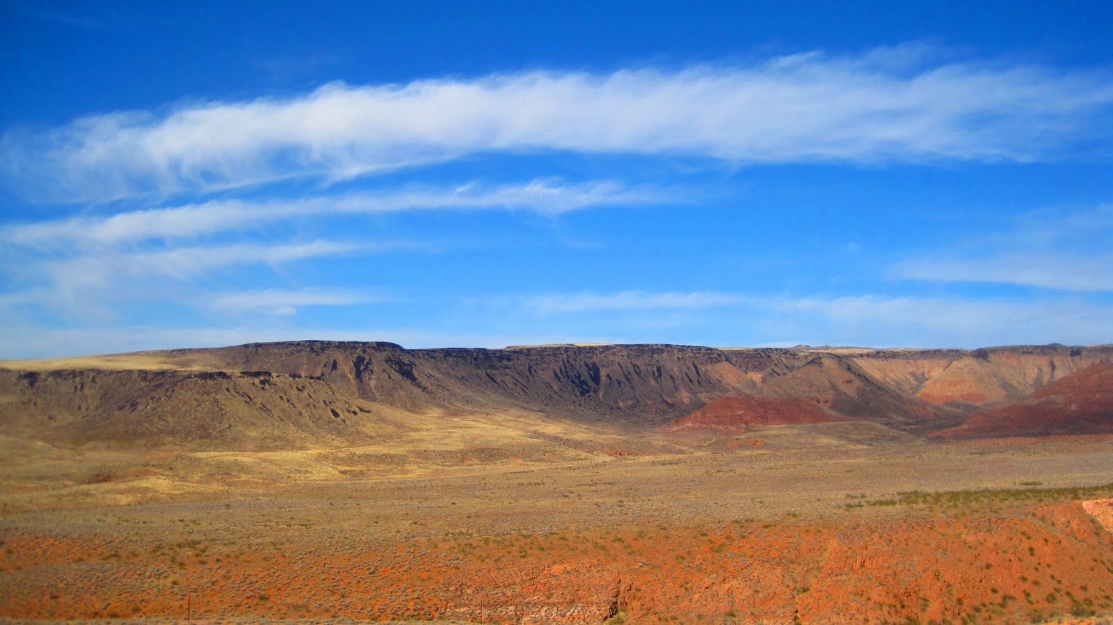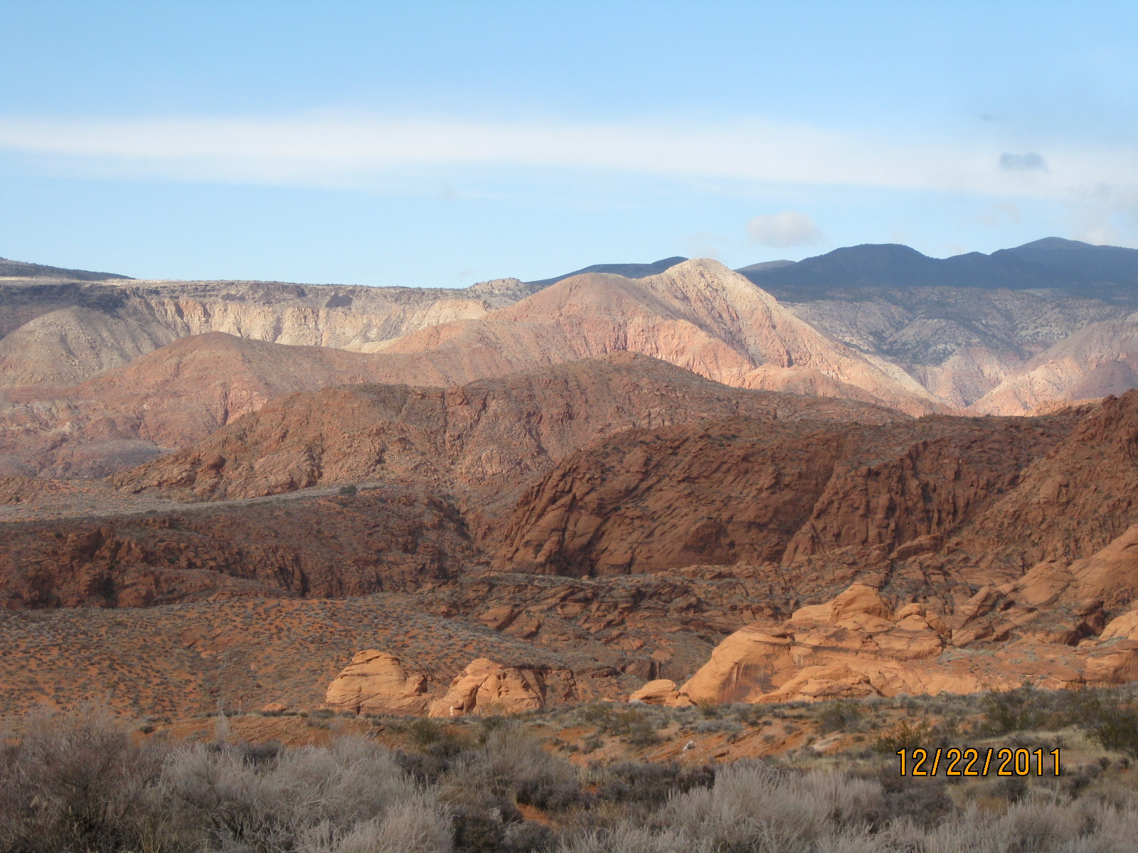 - Views also include the black lava escarpments from the plateaus north of the city of St. George.