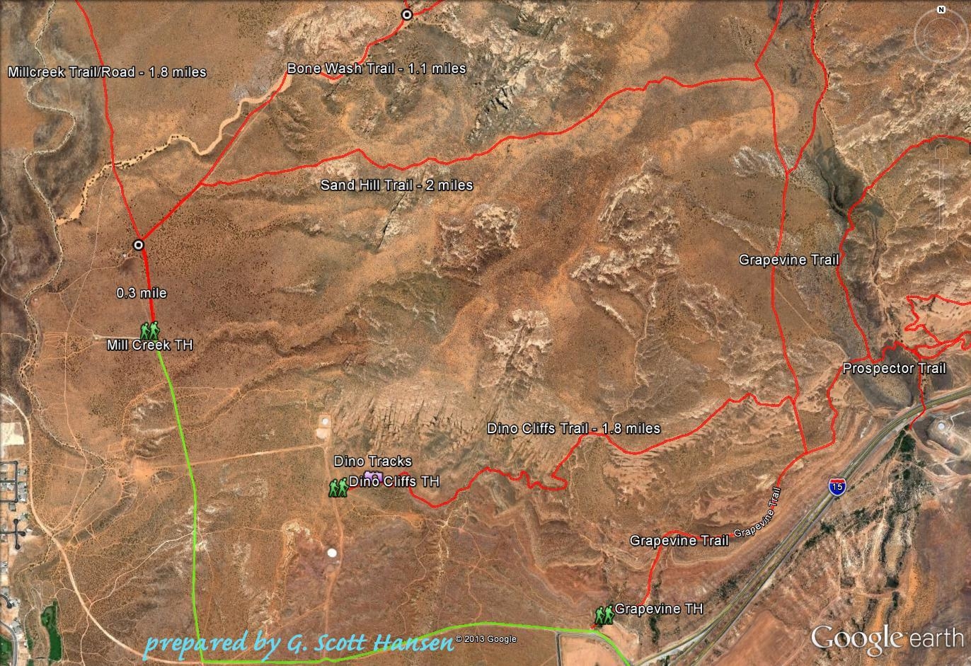 - This map shows the Sand Hill trail and its various access points from the south as well as a potential loop opportunity with the Dino Cliffs trail.