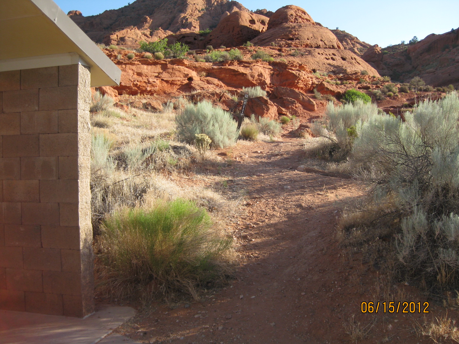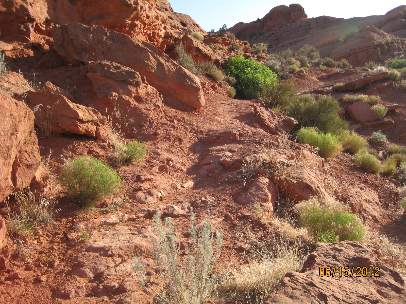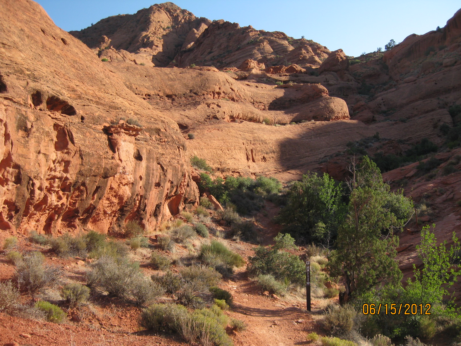 - The trail heads up into a beautiful box canyon that is part of the red sandstone formations throughout the recreation area.