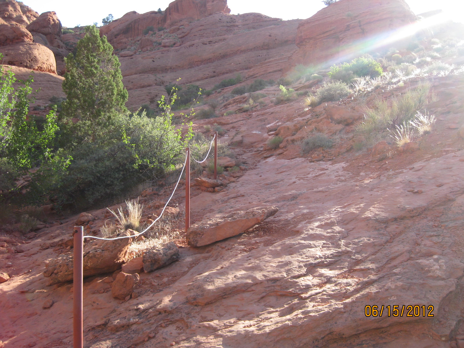 - Portions of the trail cross through red slick rock.