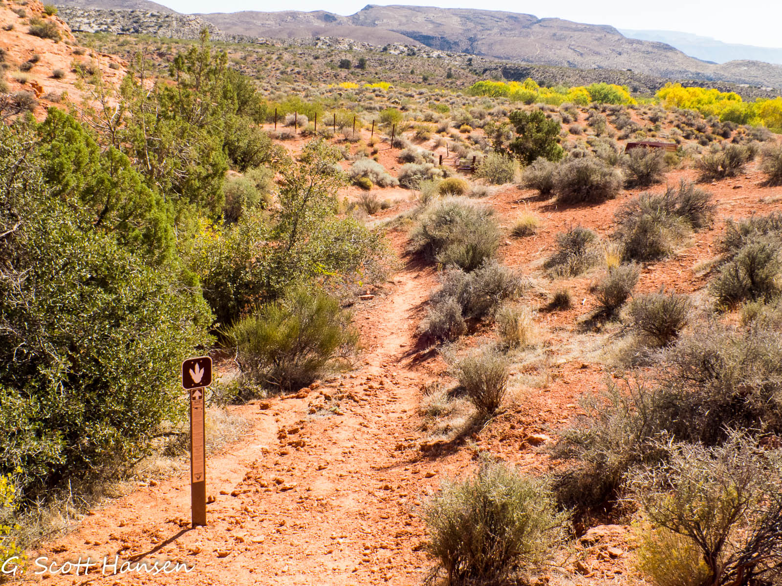 - The trail ends at an elevated overlook about 300 yards from the start. Views of the surrounding red rock country are exceptional.