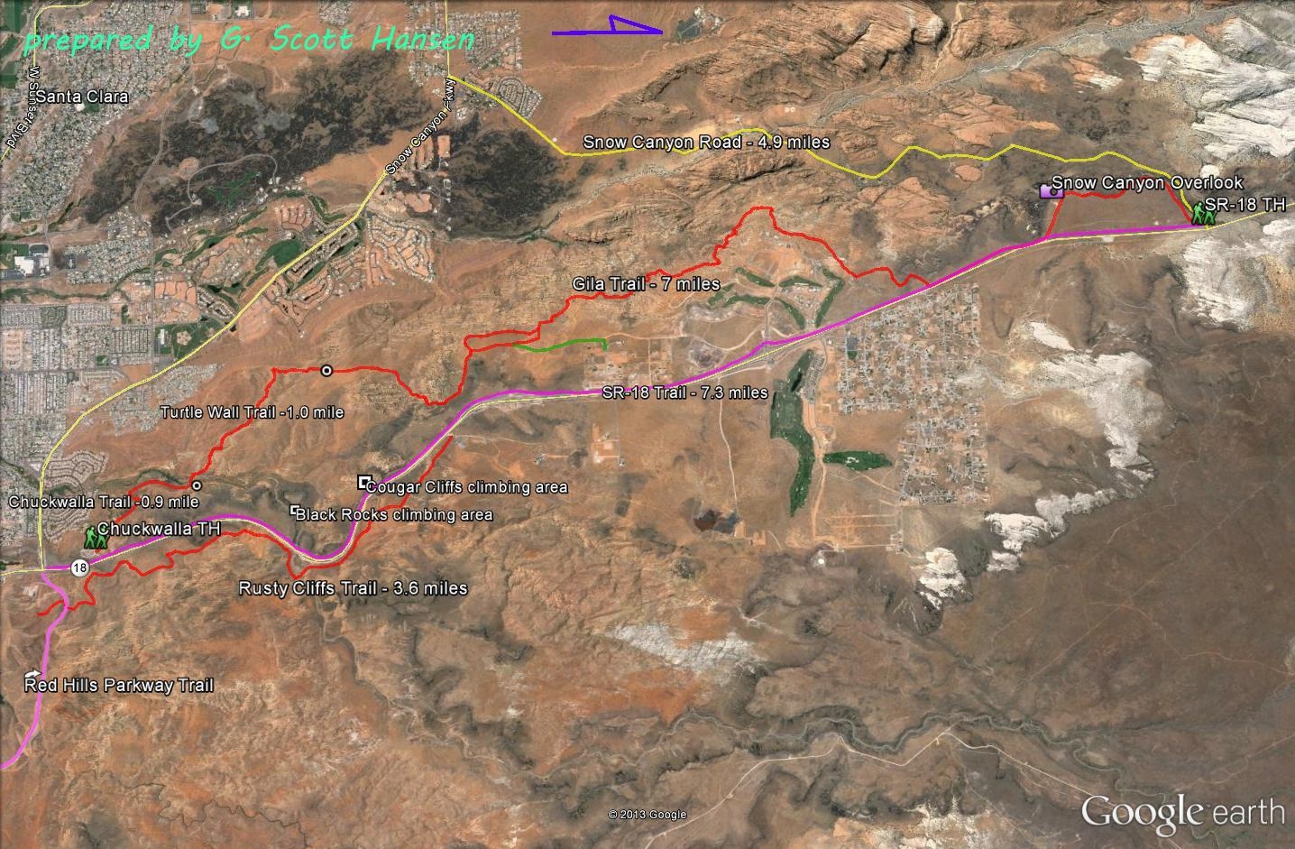 - Six miles from its southern end, the trail intersects with a short spur leading to the spectacular Snow Canyon scenic overlook.