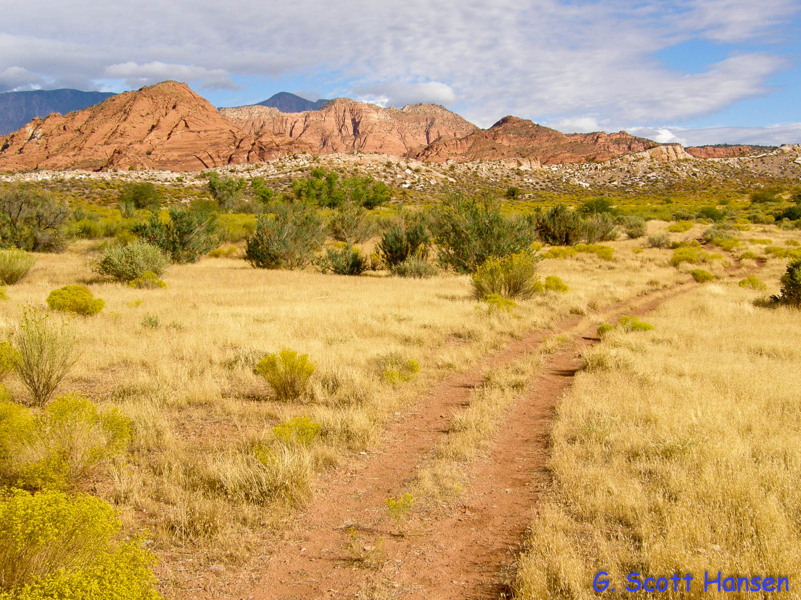 - Other views along the trail include the spectacular red rock cliffs of the Cottonwood Canyon wilderness area.
